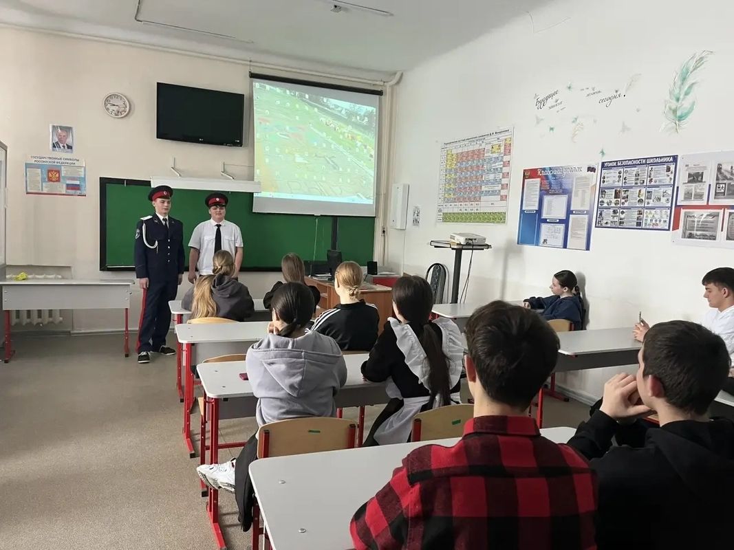 27 февраля в рамках профориентационной работы состоялась встреча учащихся 9-11классников с бывшими учениками школы, а ныне студентами 1 курса Миллеровского казачьего кадетского профессионального техникума Ткаченко Я. и Соболевым С..