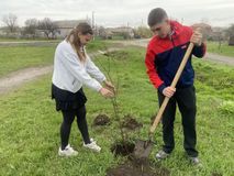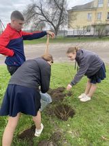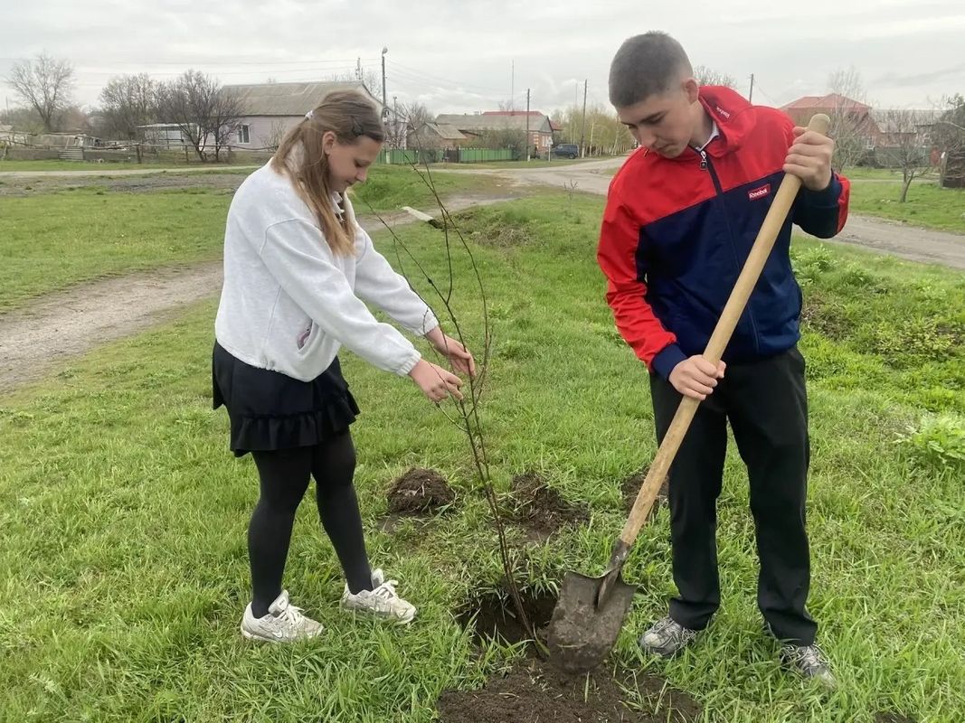 Ативисты движения «Волонтёры Победы» Дегтевской школы приняли участие в акции «Дерево жизни» и высадили саженцы кустарников возле школьного двора.